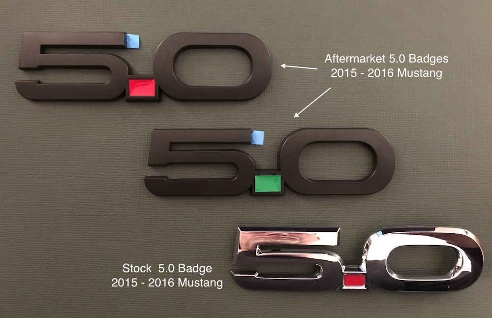 Larger, after-market 5.0 decimal point vinyl sticker inserts (UPR/LMR/etc.) Exterior grade Oracal vinyl. 4 inserts of same color. Price includes US postage. Available in all the same colors as the stock decimal point stickers. For 2015-2019 Aftermarket Mustang GT badging.